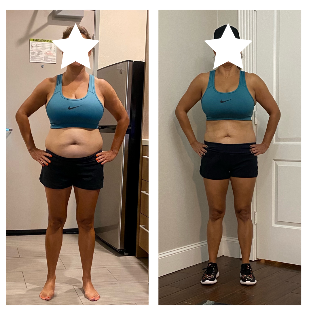 This is my client Teresa. When she came to me she was in menopause, eating less than 1000 calories a day with very little carbs, and doing lots of cardio....yet she couldn't lose an ounce.